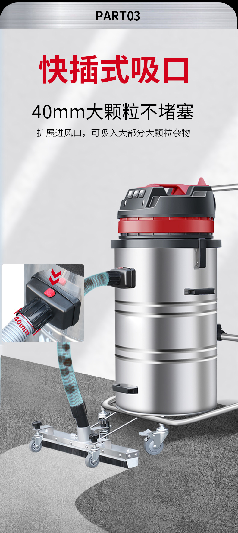 蓟州坦洁220V单桶不锈钢工业吸尘器X3系列