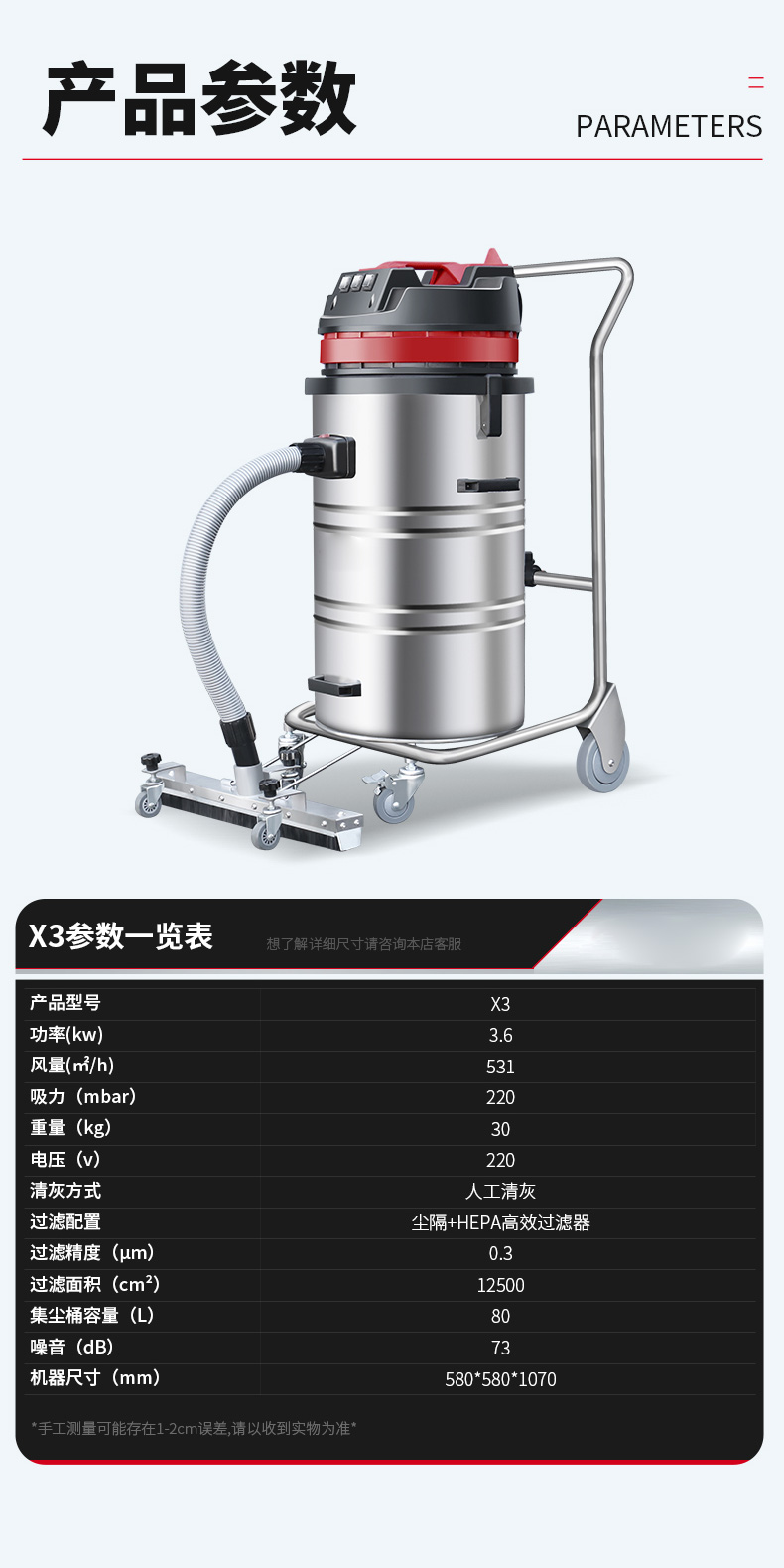 蓟州坦洁380V双桶不锈钢工业吸尘器X7系列
