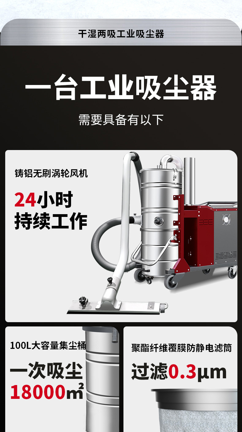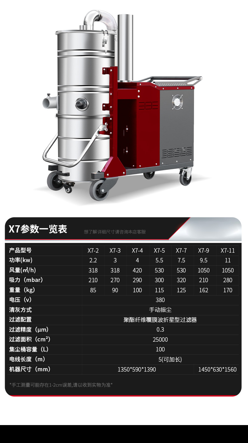 蓟州坦洁380V双桶不锈钢工业吸尘器X7系列