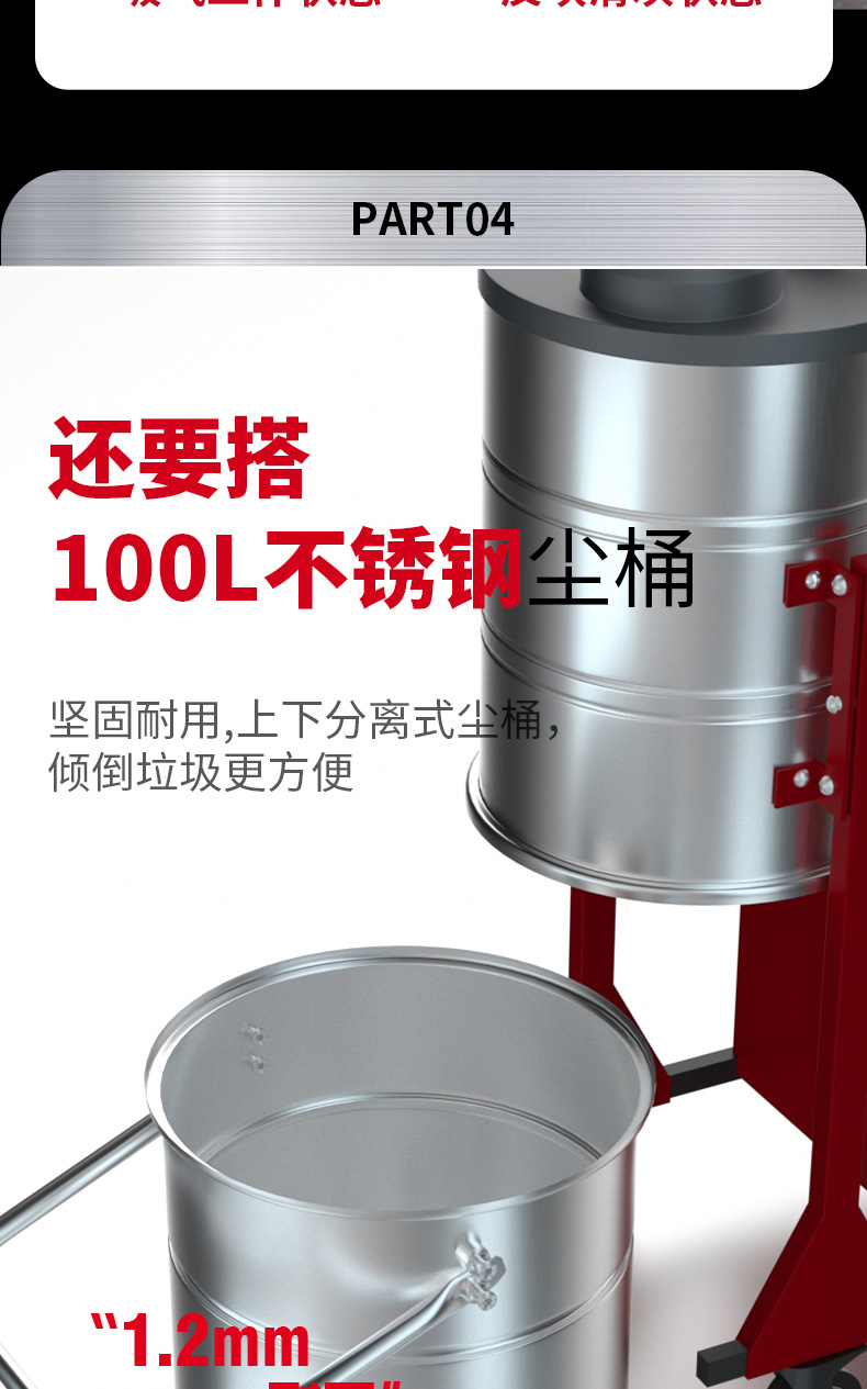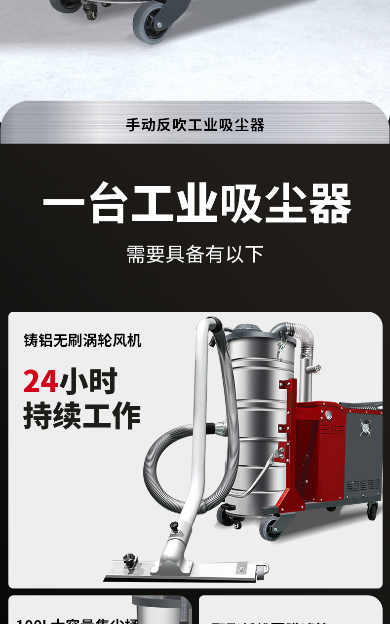 蓟州坦洁380V双桶不锈钢工业吸尘器X7系列
