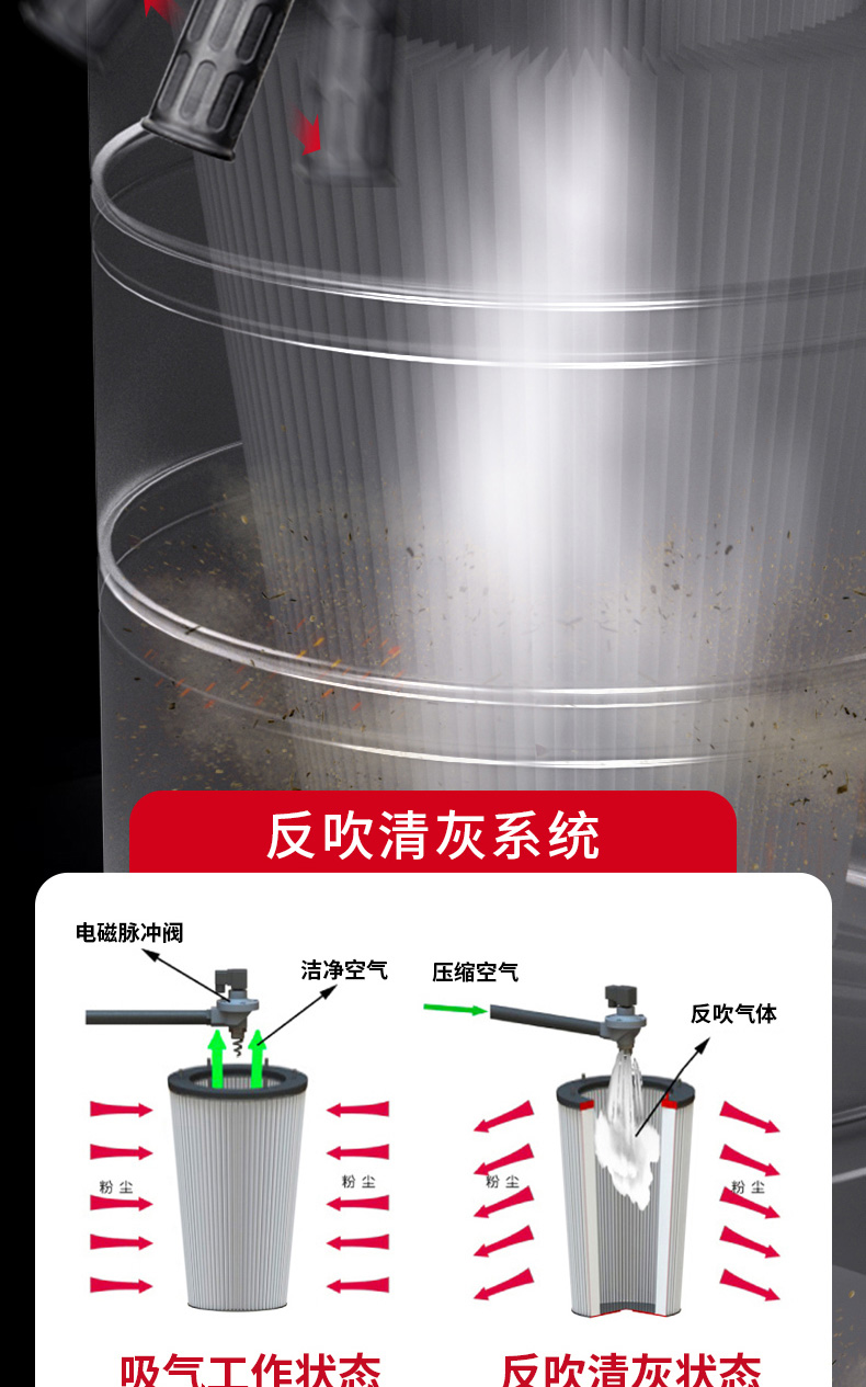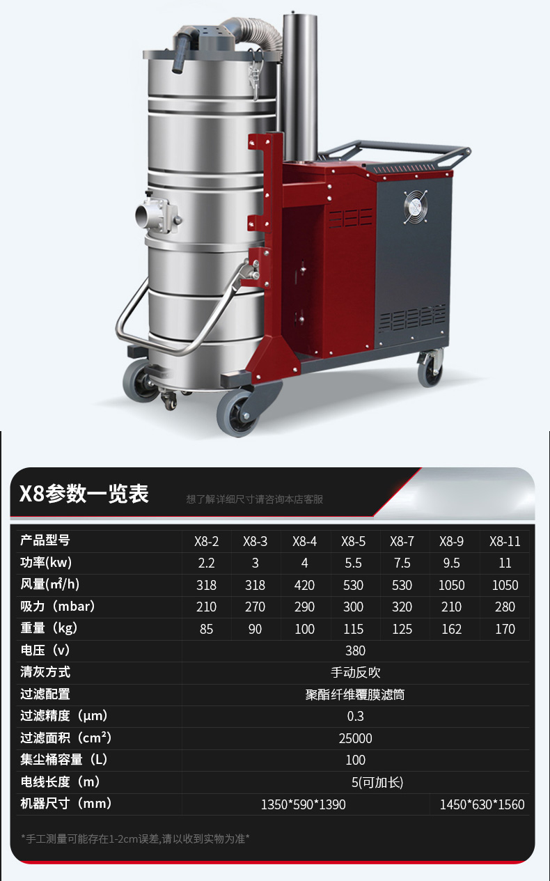 蓟州坦洁380V 双桶手动反吹工业吸尘器X8系列