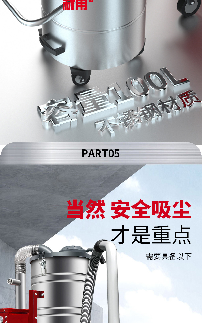 蓟州坦洁380V单桶不锈钢工业吸尘器X5系列