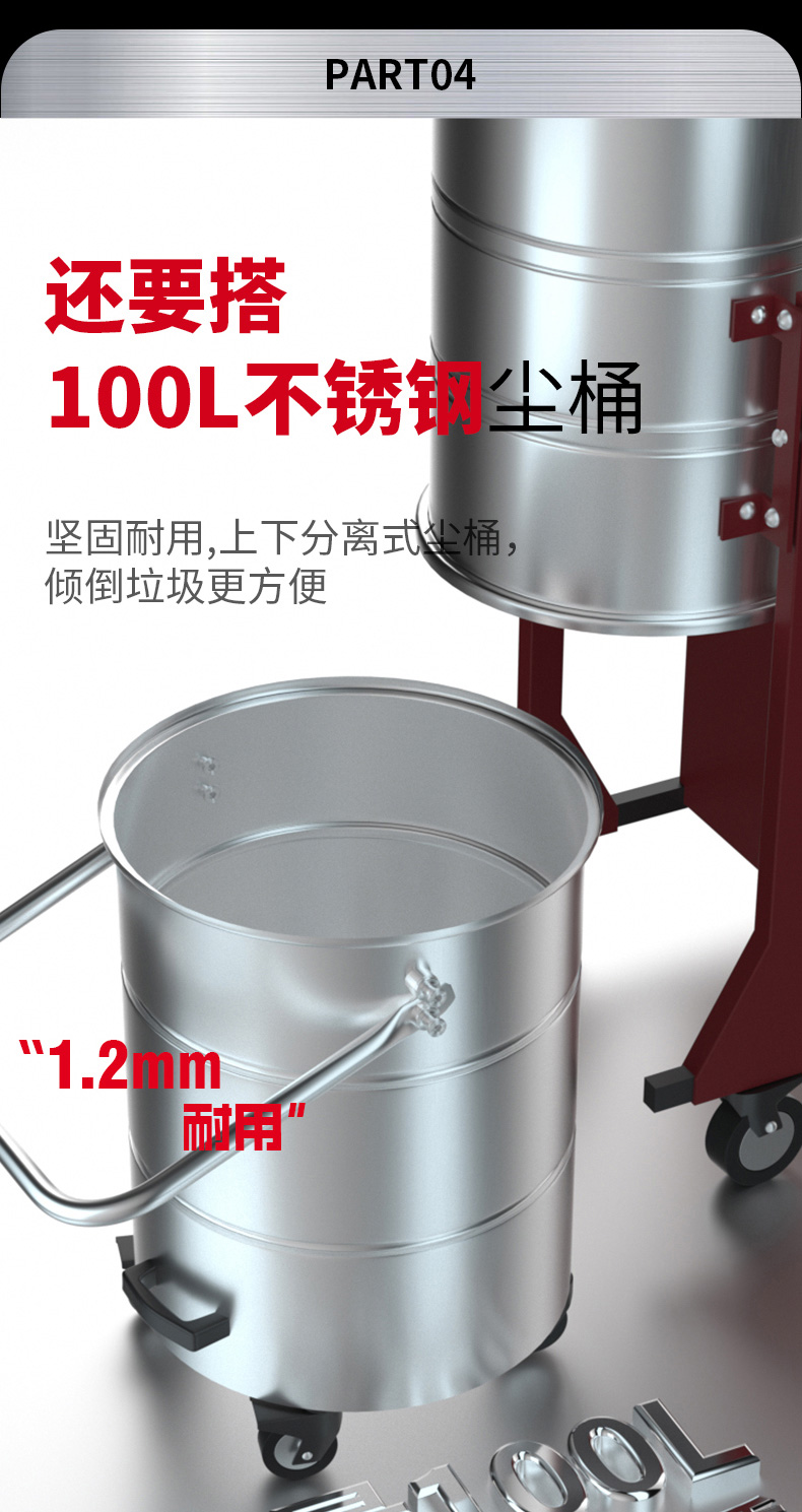 蓟州坦洁380V双桶不锈钢工业吸尘器X7系列